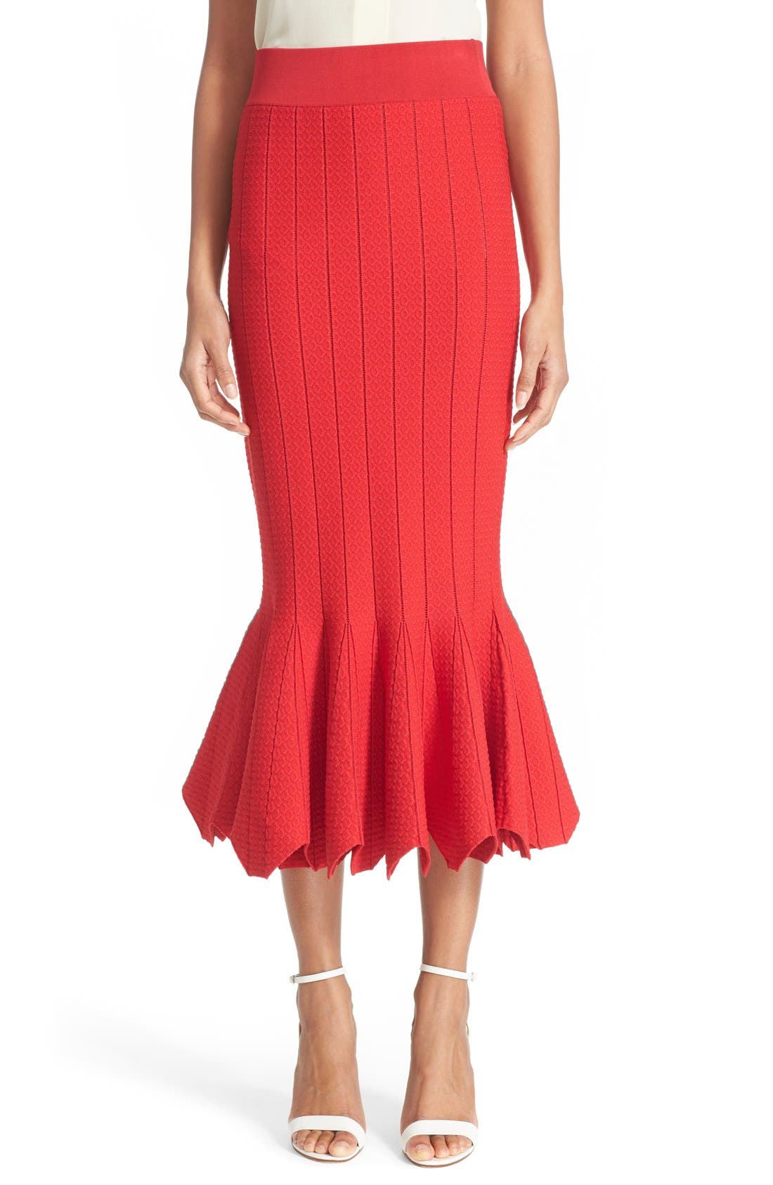 Sale Alexander Mcqueen Knit Trumpet Midi Skirt White Modes Selmer Lincoln Trumpet