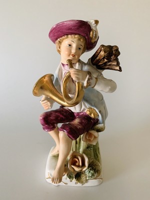 Antique Camille Naudot Porcelain Figurine Trumpet Boy 10inches Ebay Trumpet Plant Purple