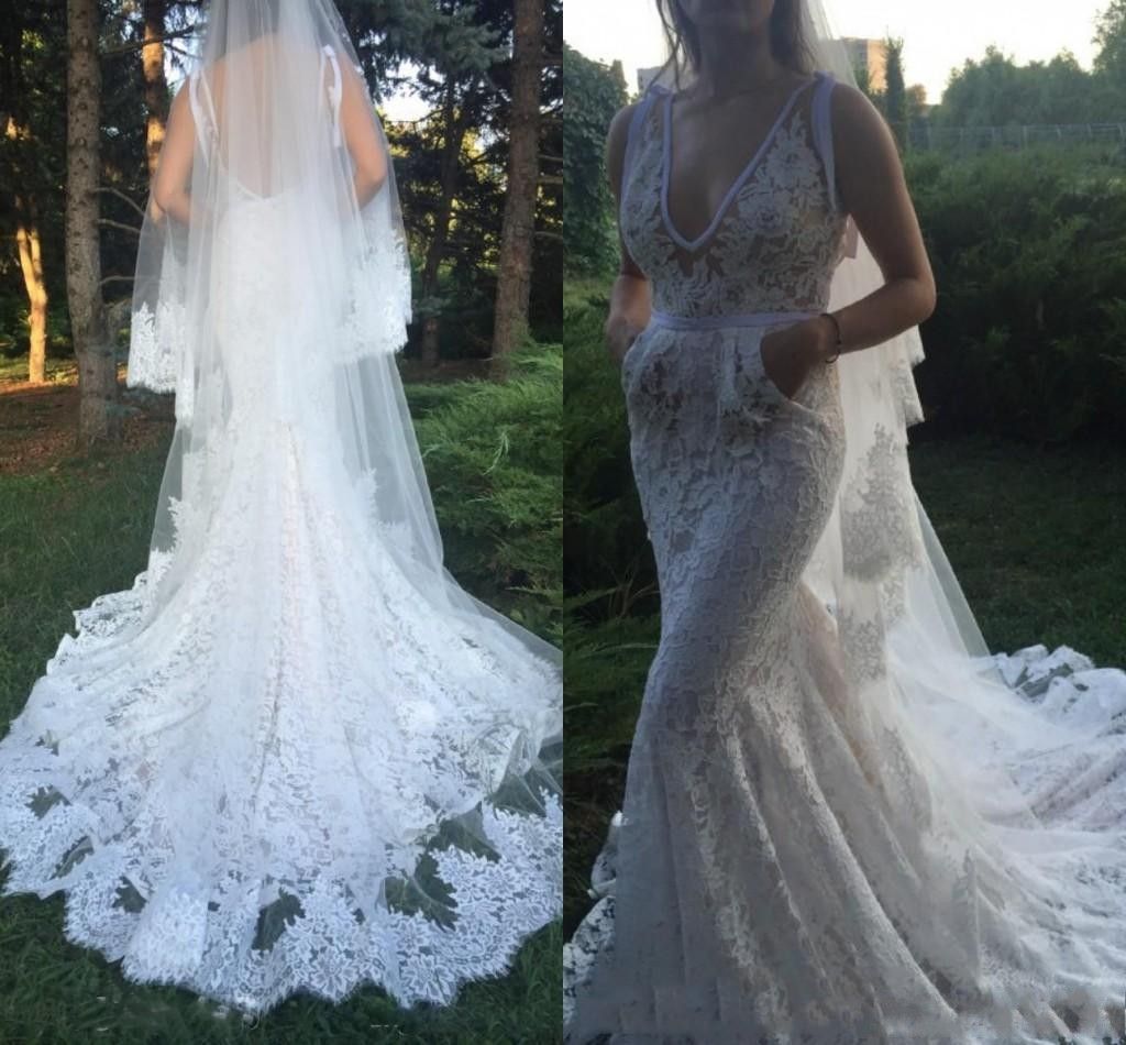 Sexy Lace Wedding Dresses With Pocket Deep V Neck Backless Trumpet Long Beach Bridal Dress Without Veil Mermaid Wedding Gowns Backless Beaded Mermaid Wedding Dresses Bride Wedding Dresses From Magicglasses 137 49 Dhgate Com Raja Trumpet Price