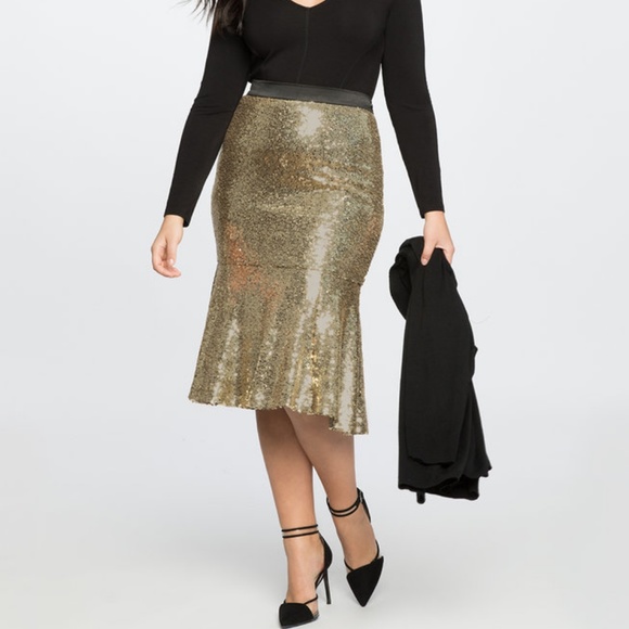 Eloquii Skirts Gold Sequin Trumpet Midi Skirt Poshmark Trumpet Player Cheeks